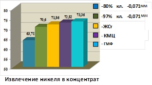На основе установленных минералого-петрографических особенностей труднообогатимой тонковкрапленной медно-никелевой руды Печенгского рудного поля, закономерностей раскрытия сульфидных минералов в процессе измельчения и флотационного разделения тонкодисперсных частиц обоснованы эффективные технологические решения, включающие снижение крупности питания флотации с 80 до 97% класса -0,071 и оптимизацию реагентного режима за счет введения реагентов-диспергаторов. Разработанная технология позволит повысить извлечение никеля в кондиционный концентрат на ~7-8 % при снижении его массовой доли в хвостах флотации
